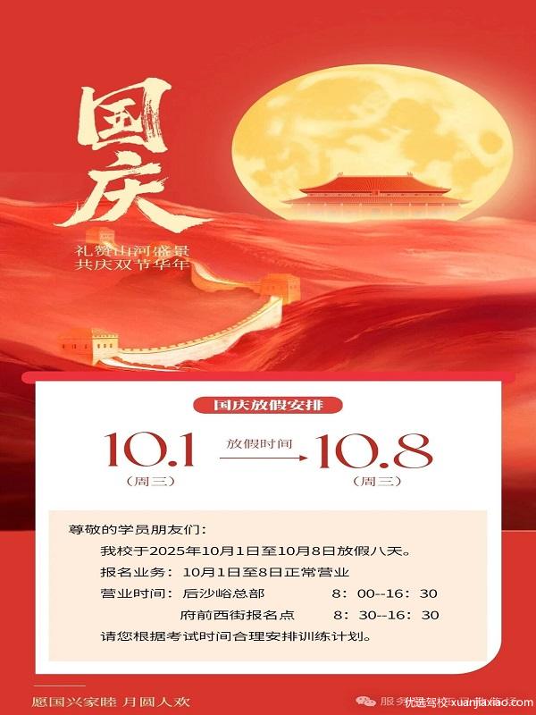 北京玉马京城驾校国庆放假通知